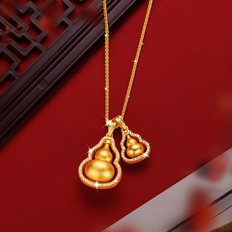 ベトナム沙金高保色韋雪同金点ドリル回転可能双ひょうたん重ねペンダントネックレスプレゼント卸売り