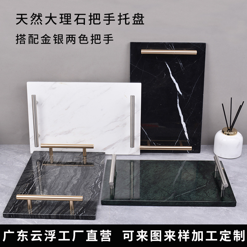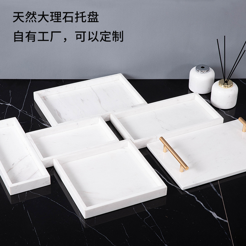大理石の取っ手のトレーのアクセサリーの置物の家庭用洗面台の浴室の洗面器の収納の装飾の展示盤の長方形