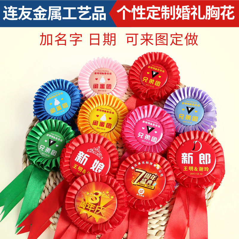 お祝いのウェディングブローチ、カスタムメイドの胸章、新郎新婦、親友、付添人、結婚式の記念品、ウェルカムバッジ製作