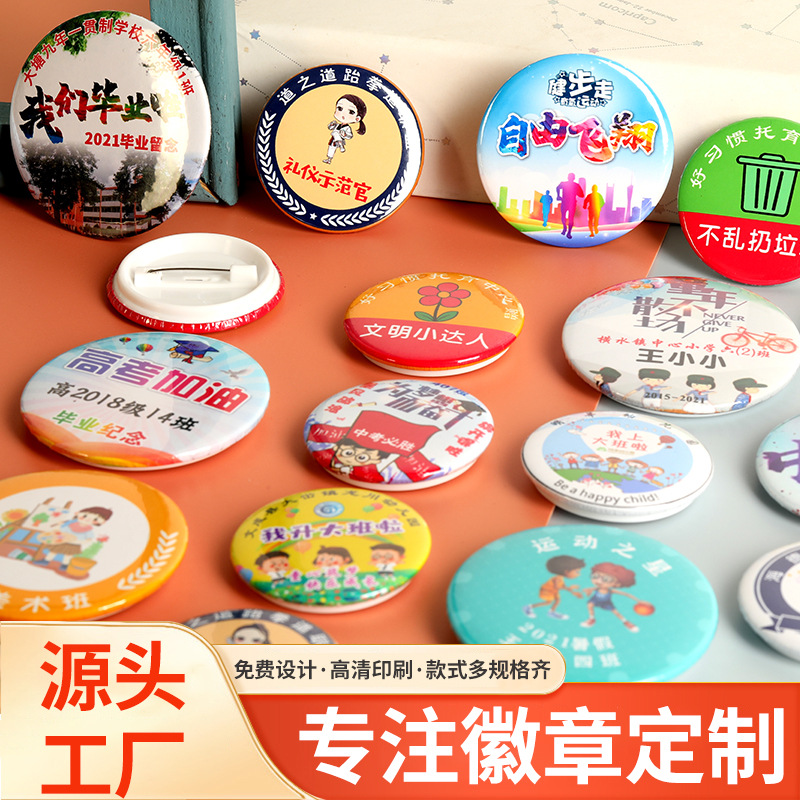 ブリキ製バッジ、カスタムメイドの金属バッジ、胸章、ピンバッジ、漫画アニメ周辺グッズ、二次元バッジ、カスタムオーダー