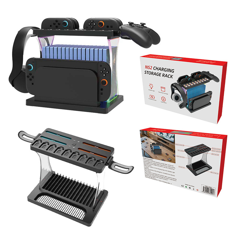Switch2 ホスト多機能収納ラック RGB ライト付き NS2 ハンドルホルダー充電器ヘッドフォンハンガーディスク収納ラック