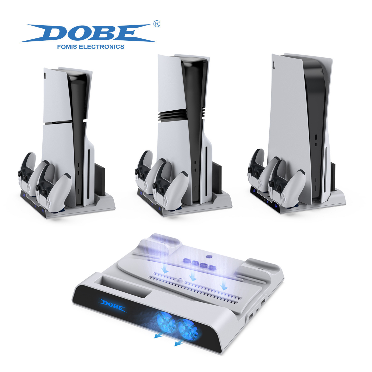 PS5/スリム/Pro コンソールユニバーサル多機能ファンベース PS5 ハンドルホルダー充電モバイルハードドライブ収納ラック