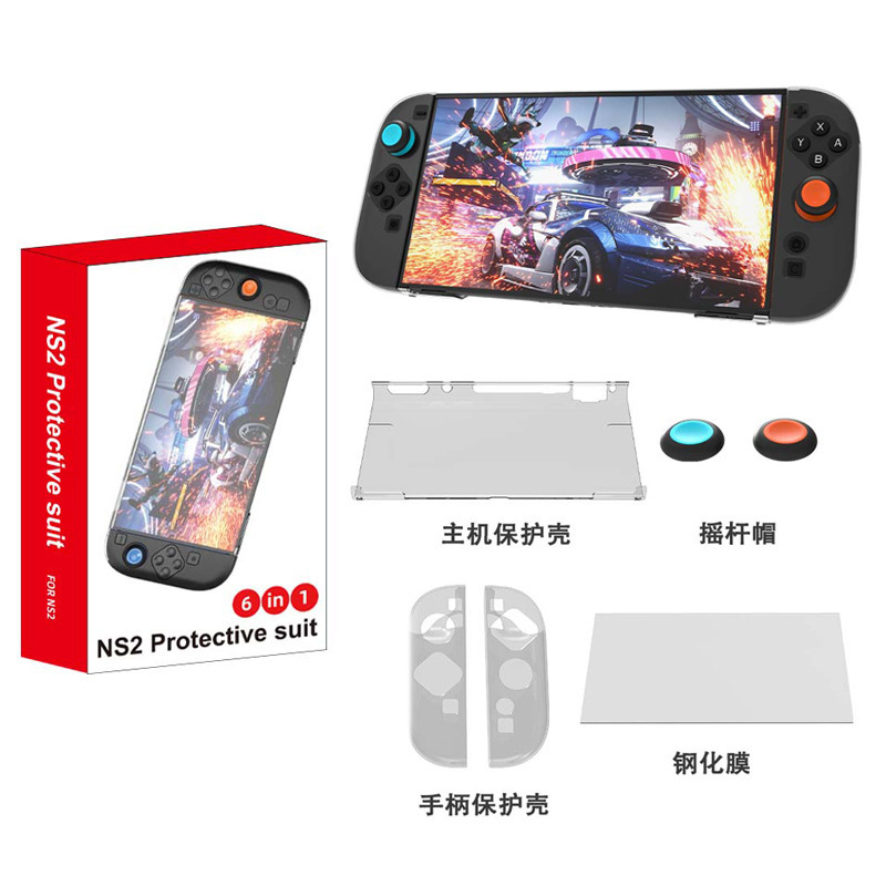 Switch2 ホスト PC 保護ケース + ハンドル TPU ケース + 強化フィルム + ロッカーキャップ 6-in-1 セット HBS-2817