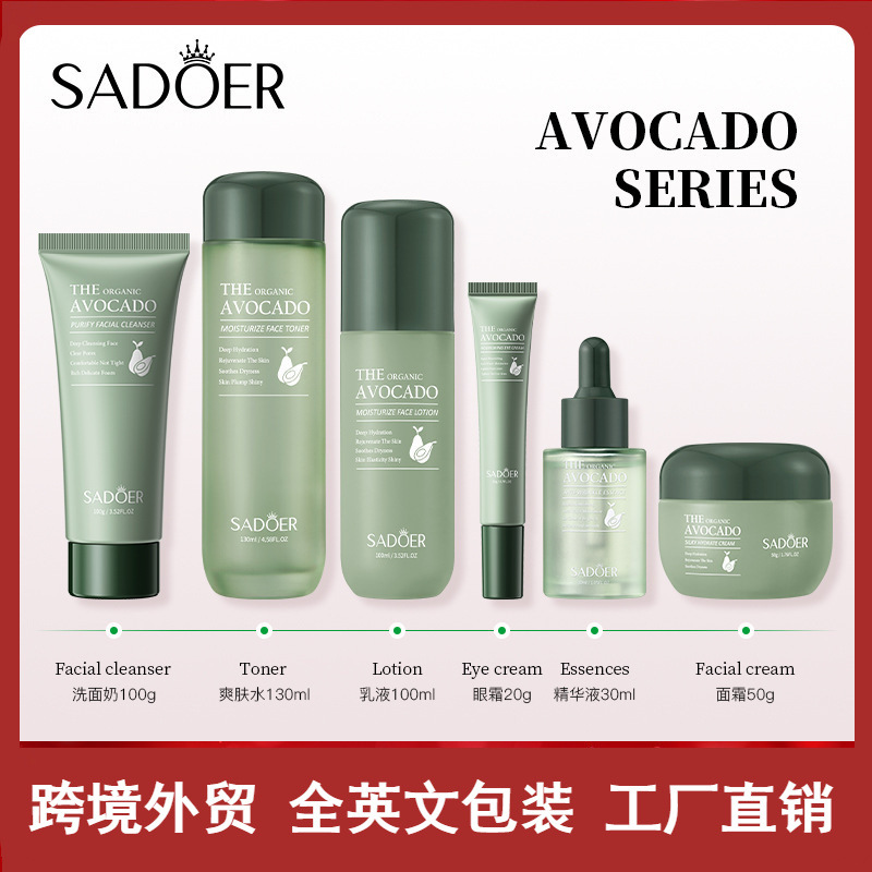 全英語牛油果スキンケア品セットSADOER清潔潤い保湿六点セットクロスボーダー対外貿易卸売り