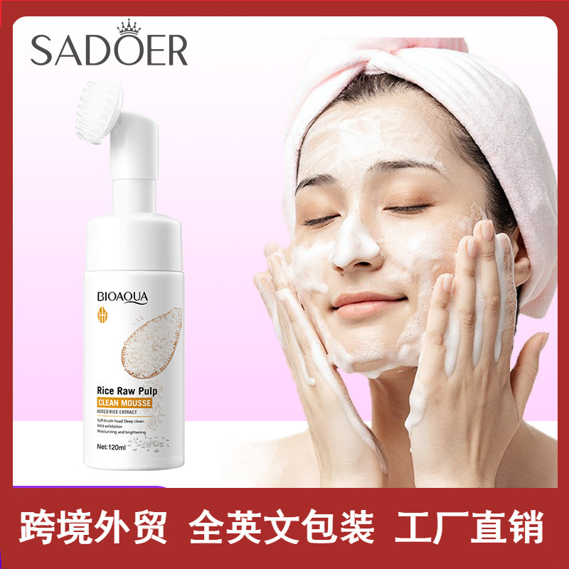 完全英語 BIOAOUA 米ピューレ クレンジング ムース 毛穴をきれいにするブラシヘッド付き洗顔料 越境卸売