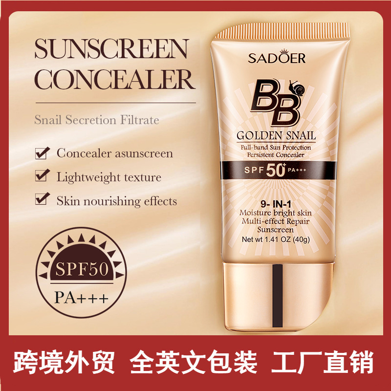 全英文SADOER黄金蜗牛防晒BB霜粉底 修颜遮瑕隔离霜跨境外贸批发