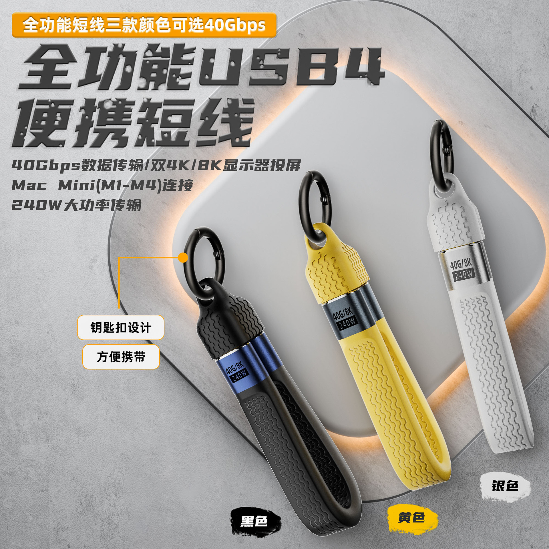 钥匙扣挂绳数据线雷电5便携全功能线8K高清传输240W40G超级快充线