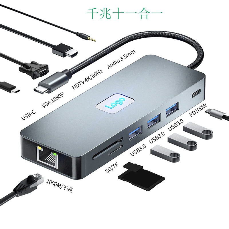 クロスボーダー Type-C ドッキング ステーション Mac ギガビット ネットワーク USB3.2 10Gbps ハブ 11-in-1 PD ドッキング ステーション