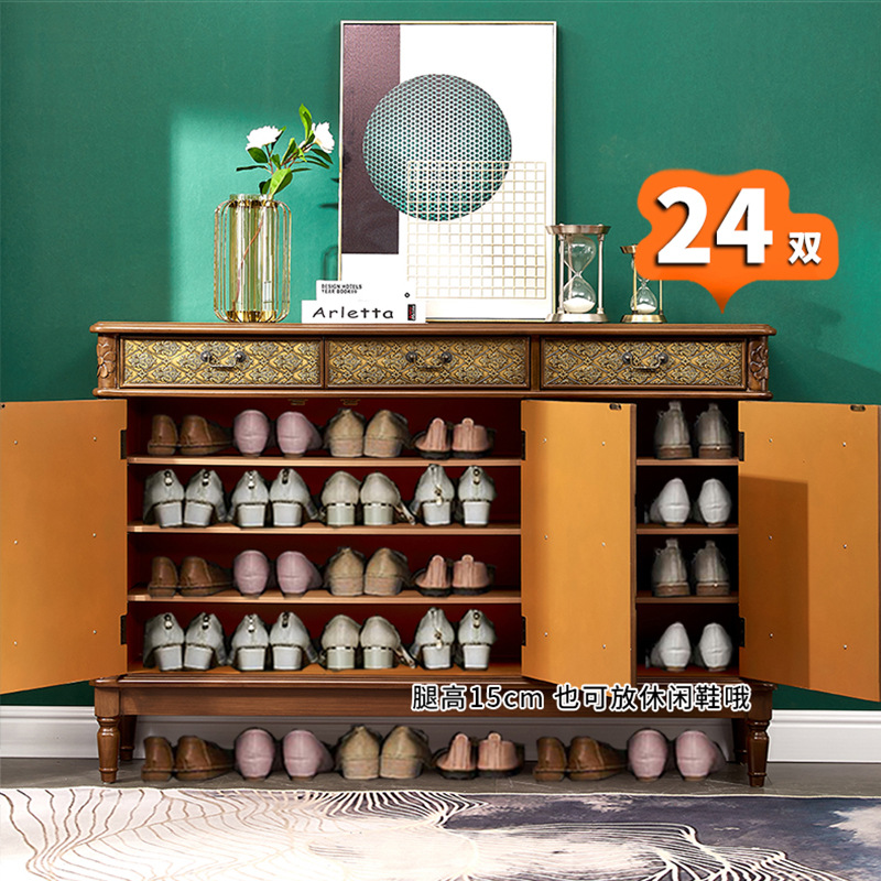 無垢材の玄関靴キャビネット一体型壁面ホームエントランス収納寝室シンプルな新製品レトロアメリカンカントリー