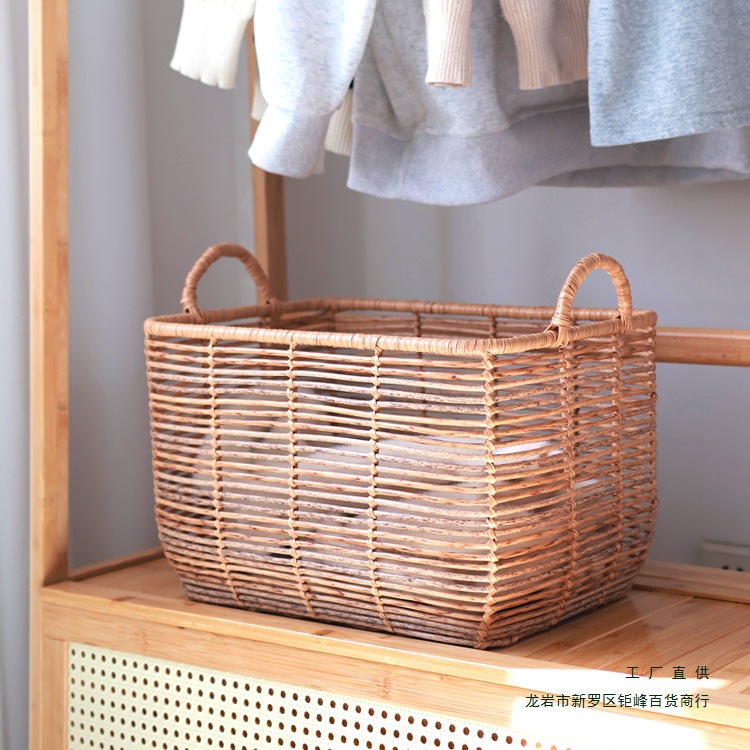 アメリカンスタイルの模造籐収納バスケット、織りバスケット、汚れた衣類バスケット、籐製収納ボックス、寝室用大型バスケットフレーム、家庭用汚れた衣類バスケット