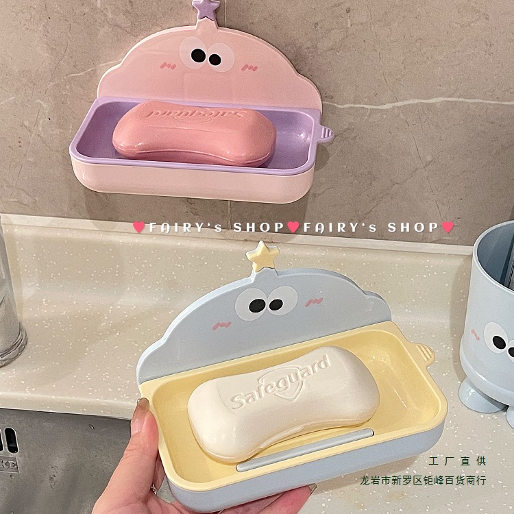 二層排水石鹸箱壁掛け収納ラック家庭用パンチフリー浴室かわいいトイレ石鹸箱新しいスタイル