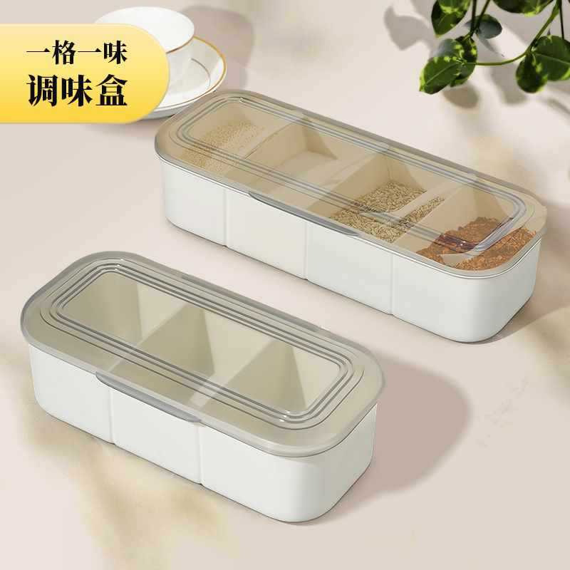 食品グレードの調味料ボックス一体型マルチグリッドキッチン塩シェーカー組み合わせセット家庭用調味料瓶スプーンと蓋付き収納ボックス