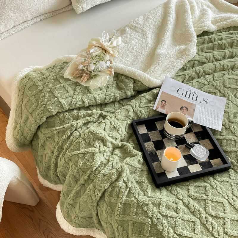 フルーツカラーブランケットタフタシェルパ二層ブランケット冬厚みのあるブランケットオフィス昼寝昼寝ソファブランケット