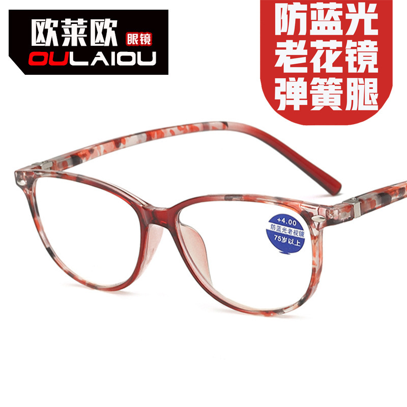 ファッション米釘高清老眼鏡ブルーレイ防止卸売り欧米包花老視鏡女性対外貿易バネ脚眼鏡