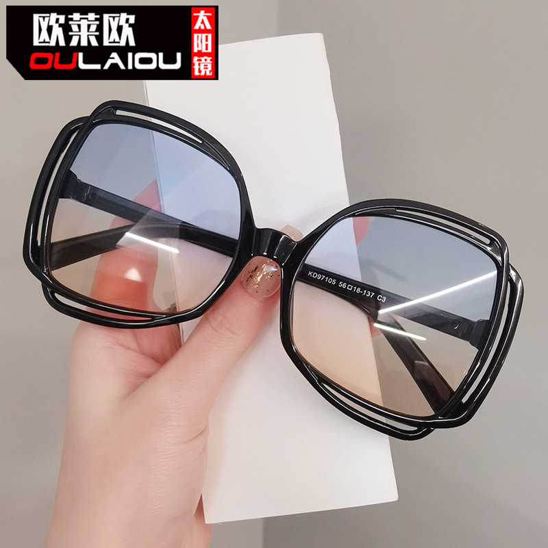 欧莱欧2024の新型の透かし彫りの大きい枠のサングラスの女性の復古の砂浜の日よけのメガネの男性は紫外線のサングラスを防ぎます。