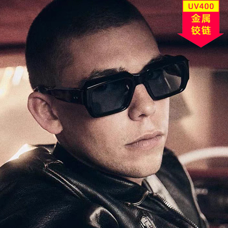 角型サングラス女性高級感サングラス男性の新型欧米の艶消し黒の太い幅のサングラス