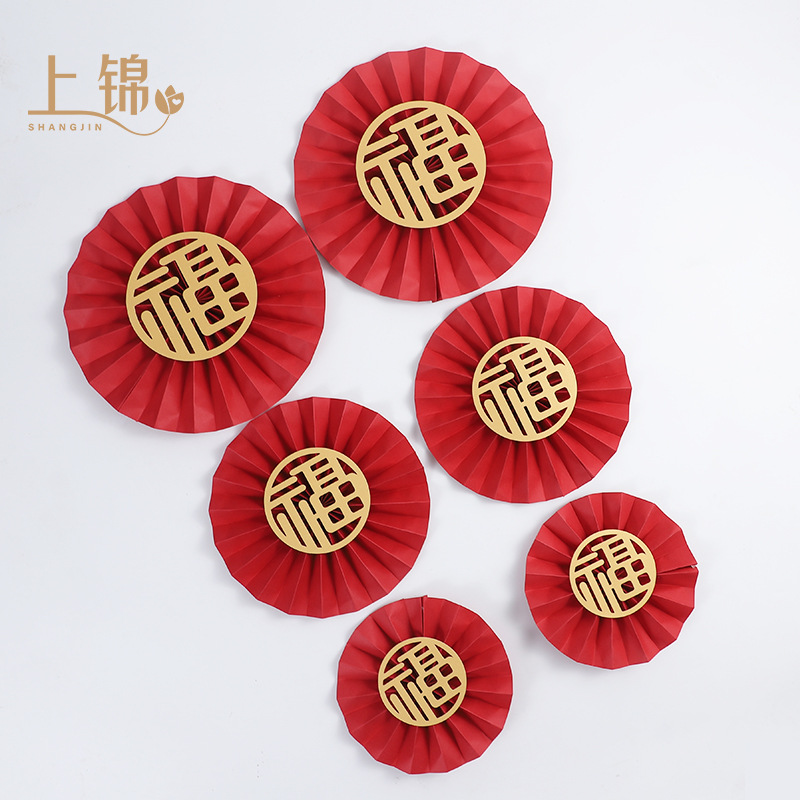 中国風福字折り扇赤い扇子純色折り扇子福桶年夜花花包装花芸diy