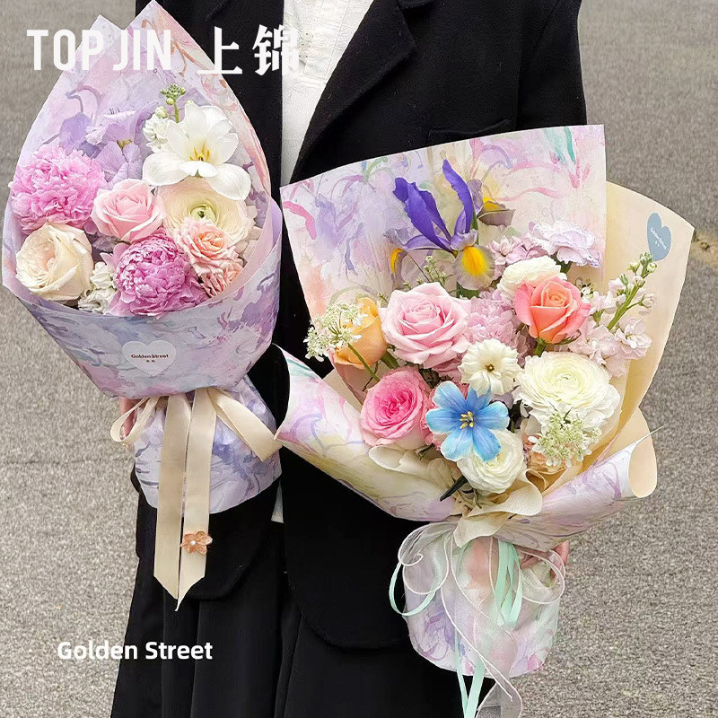 Shangjin 油絵スタイルの包装紙コレクションメーカー卸売フラワーブーケ包装紙 diy 手作り素材クラフト紙