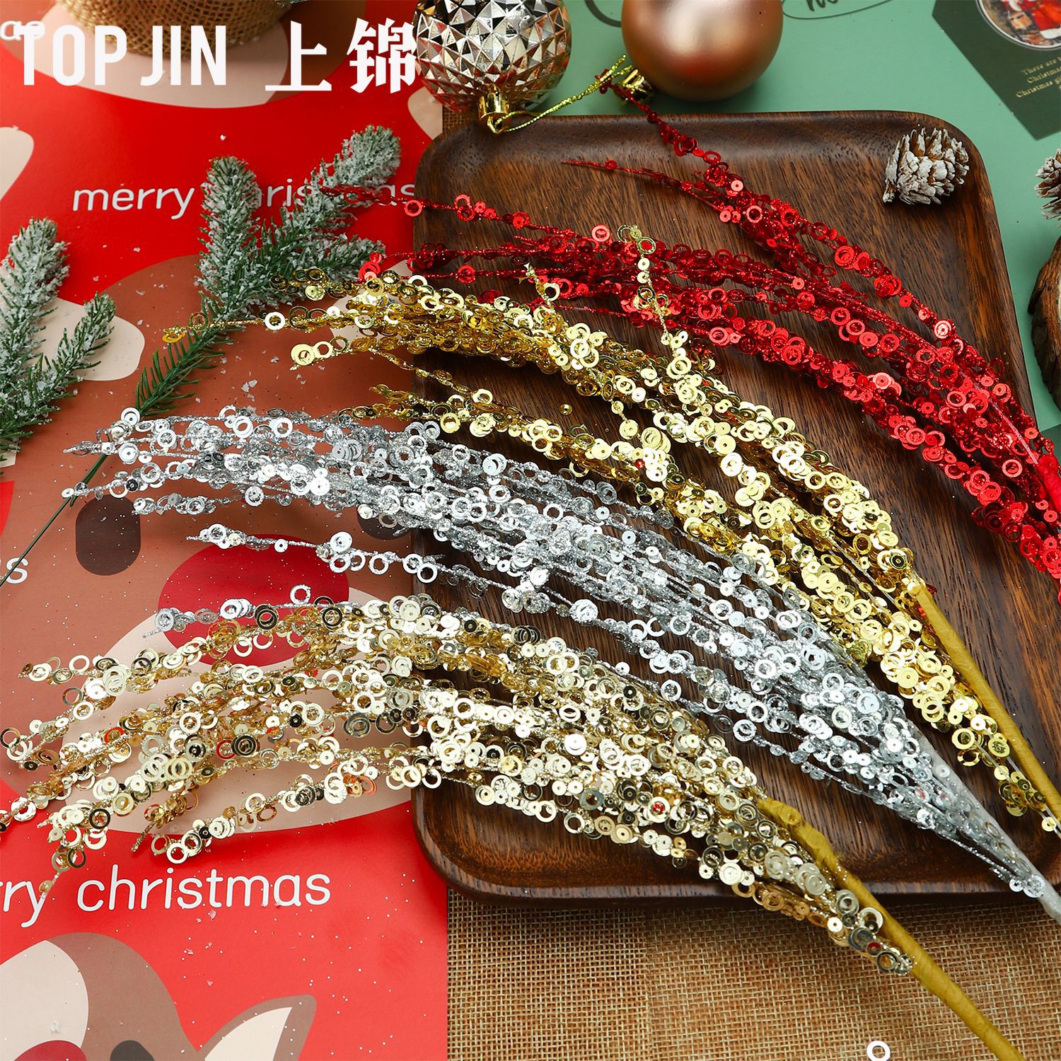クリスマスの火の木の銀の花の煙の柳の挿し木の花束の装飾のスパンコールはクリスマスツリーの贈り物のdiy材料の卸売りを飾ります。