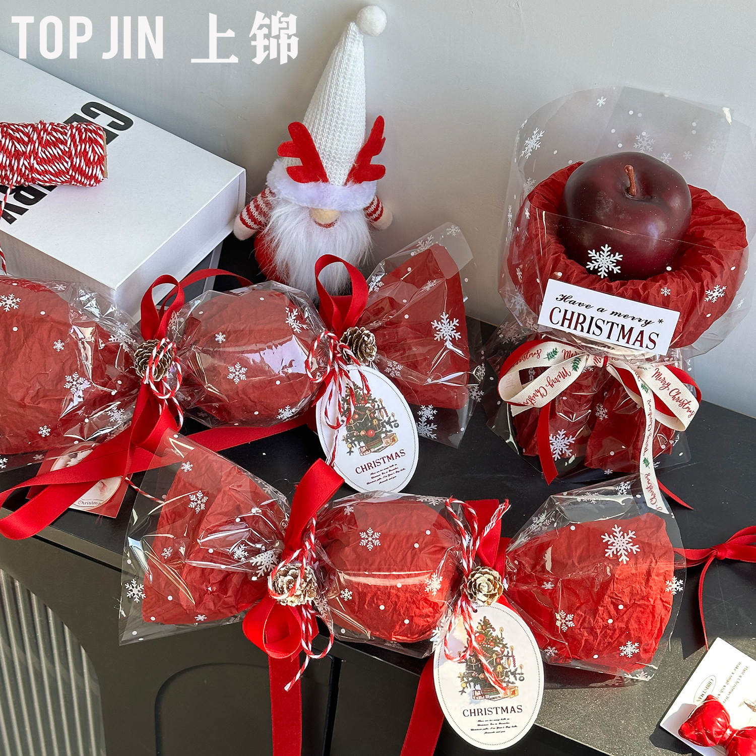 クリスマスdiy平安果小ショルダーバッグセット雪花ガラス紙包花紙平安夜花束包装材料
