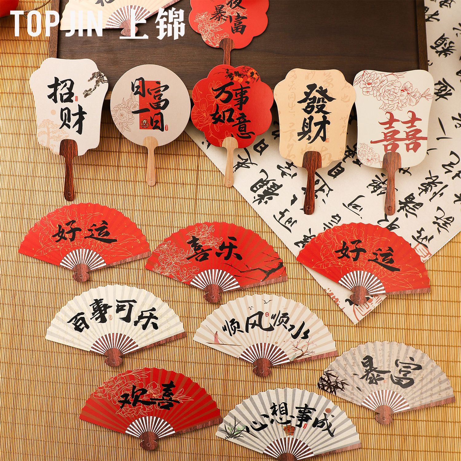 国潮扇風機形カード新年古風書道カード年夜花装飾カード花芸包装吊りカード卸売り