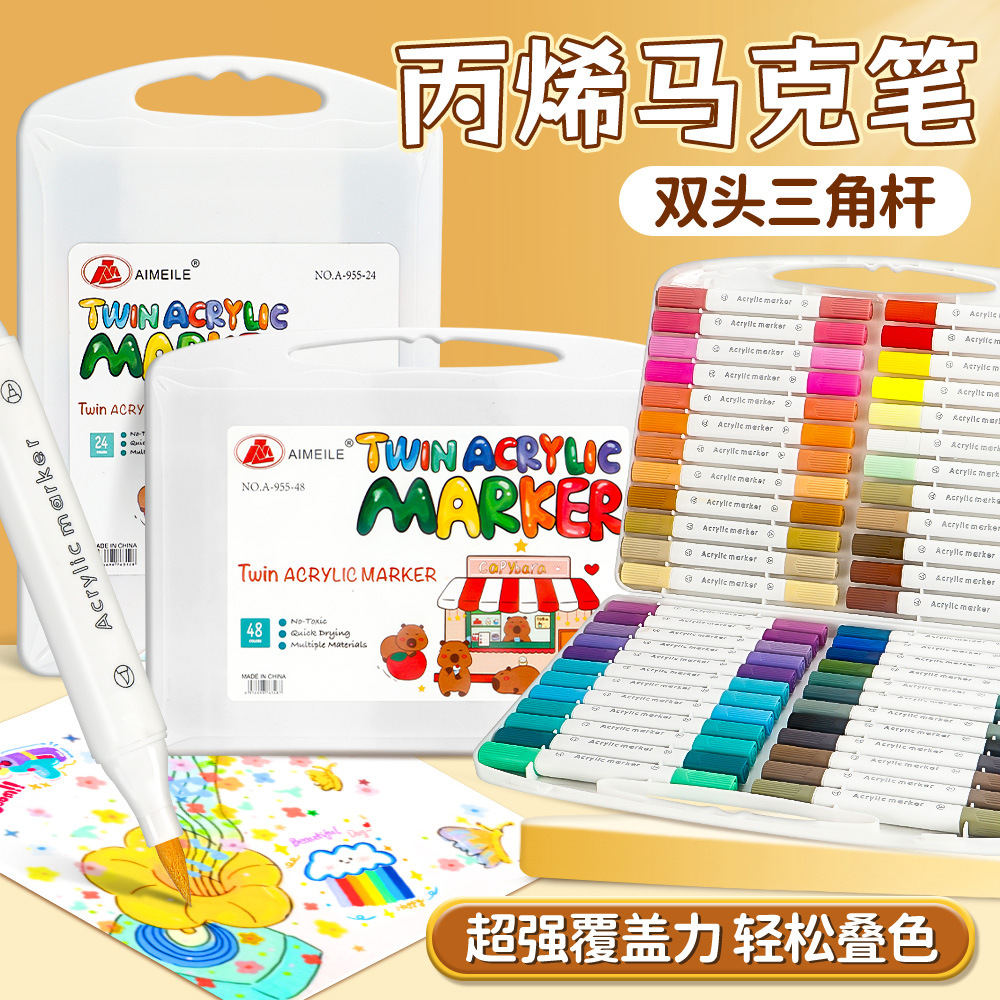 三角ポール双頭アクリルマーカーペン学生絵画セット子供 DIY 落書き水彩ペン洗えるブラシ