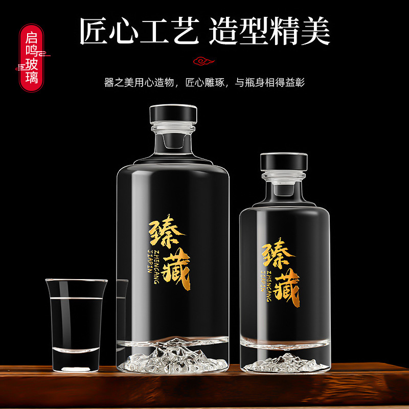 現物卸売り観山酒瓶透明ガラス白酒瓶500ml 1斤入結晶白料火山酒瓶空瓶
