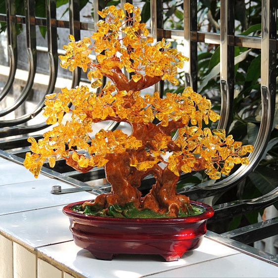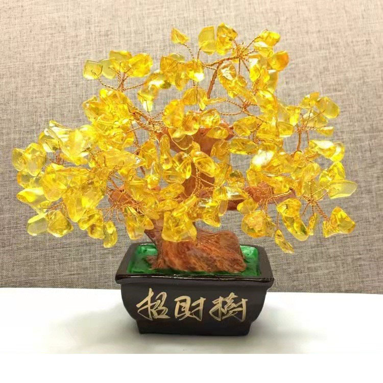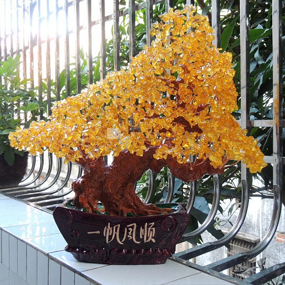 黄水晶招財樹置物発財樹客間テレビキャビネット家庭装飾品新居店舗オープンプレゼント