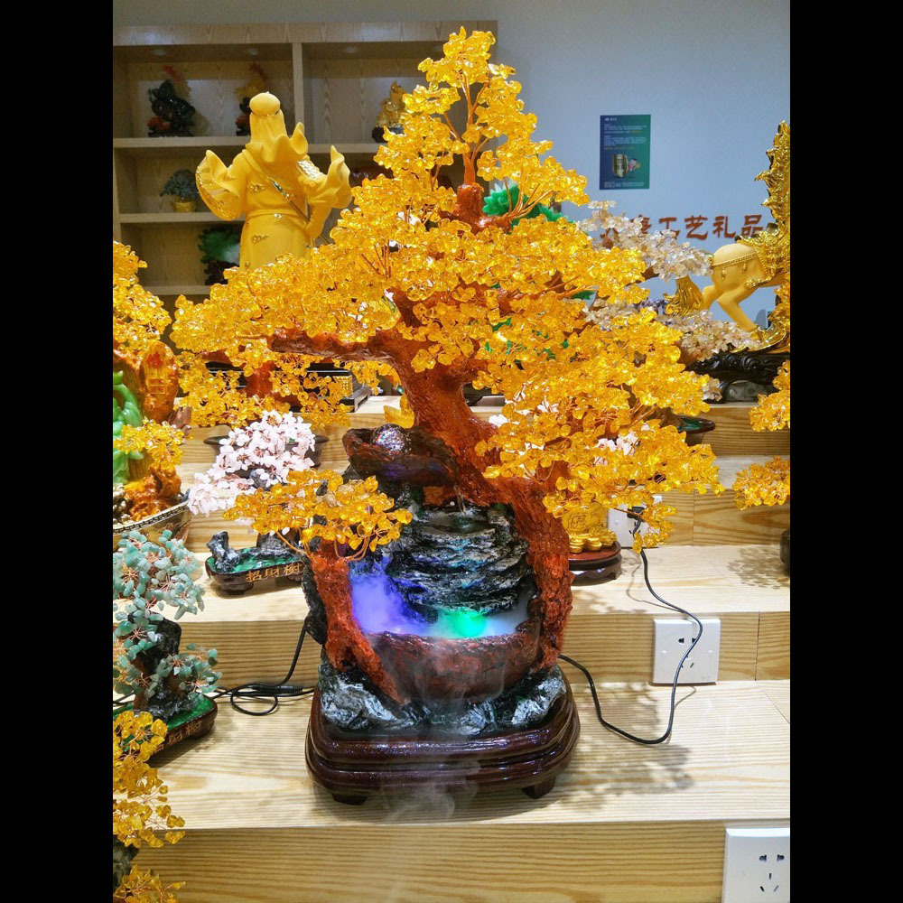 天然黄水晶発財樹招財樹金振り樹水晶樹聚宝樹大サイズ流水噴水置物