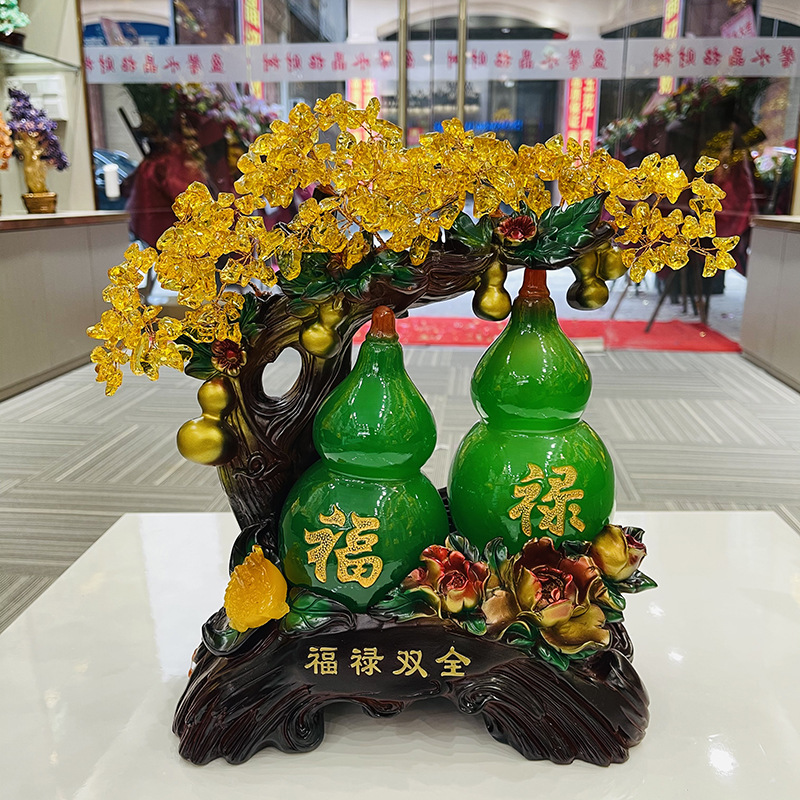 天然水晶招財樹発財樹福禄双全ひょうたん置物酒箱装飾品家庭客間金の木