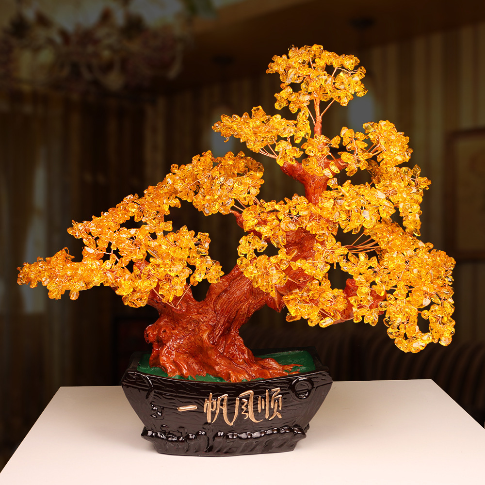 黄水晶招財樹発財樹一帆順風順家庭装飾品客間大置物移転開業プレゼント