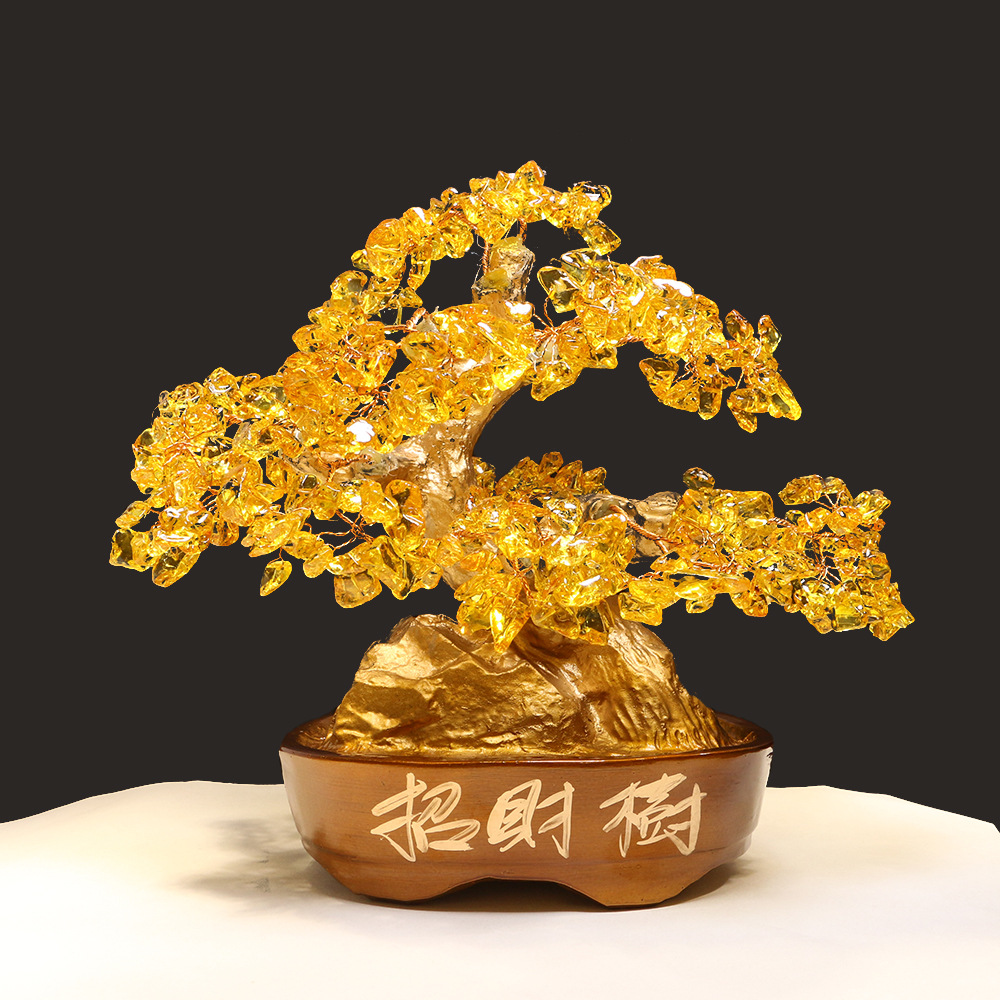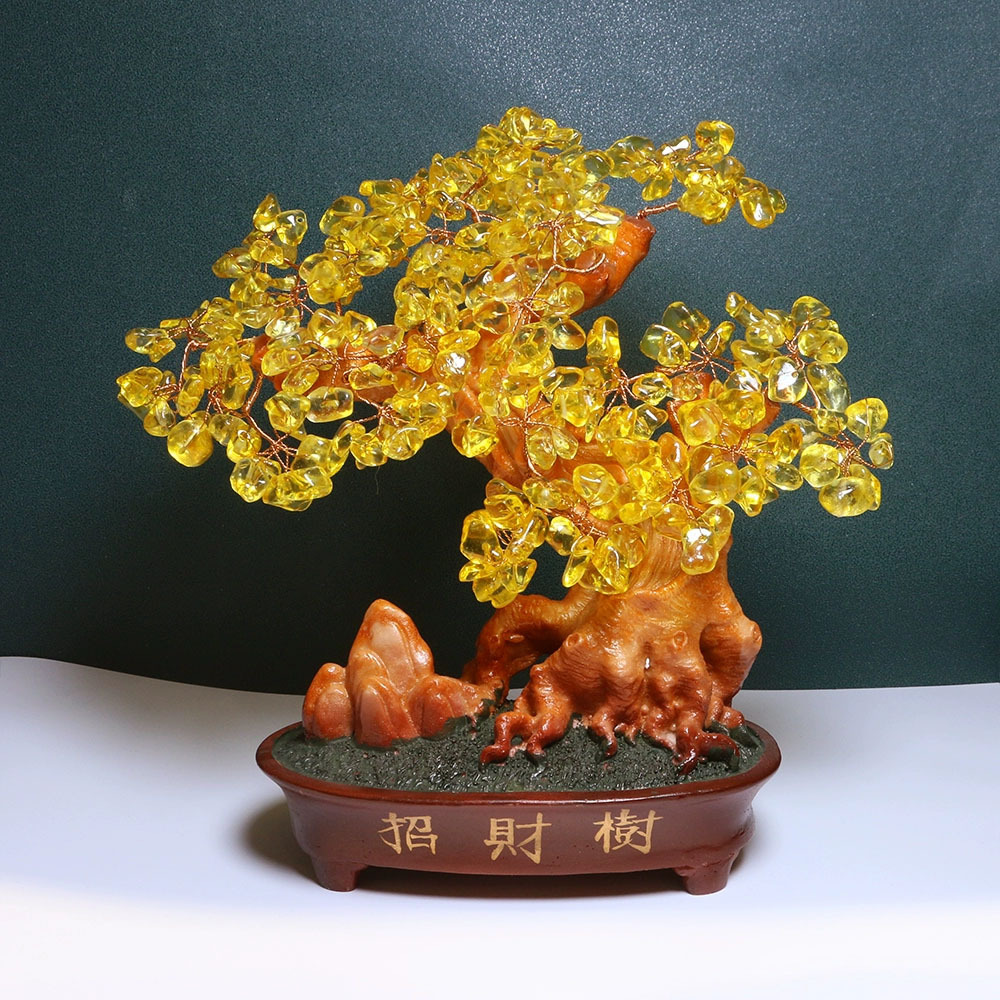 黄水晶発財樹招財樹聚宝盆置物酒棚装飾品ホームリビングルーム手作り開業プレゼント