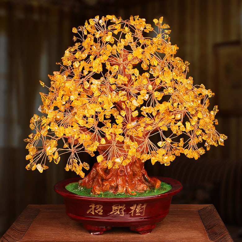 天然の黄水晶招財樹発財樹招財金盆置物酒棚装飾プレゼントホームリビングルーム