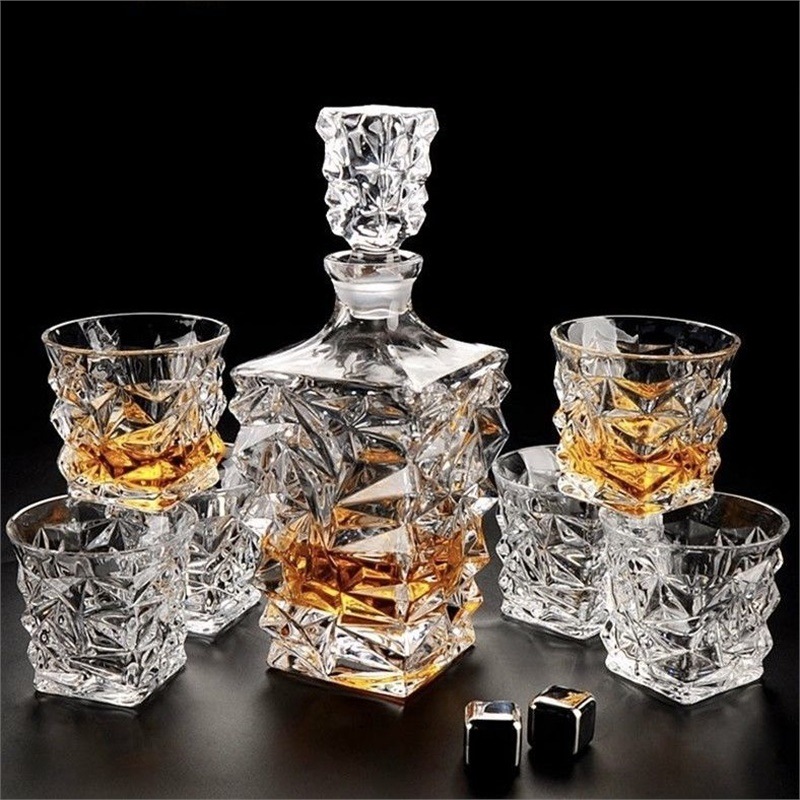 樽の置物セットウイスキーの酒の瓶の酒の箱の洋風な酒の瓶の7件の水晶のガラスの置物の氷の割れる高級な杯