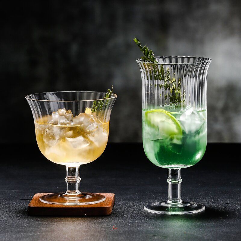 クリスタルストライプカクテルカップ高颜値シャンパンカップガラスバーロングドリンク高足カップジュースカップ冷たいドリンク