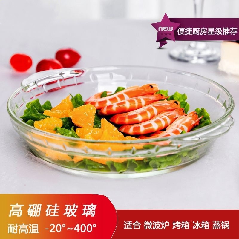 皿食品級凉菜家庭用透明オーブン円形アワビシリコン高皿耐高温ホウ素ガラス焼き皿