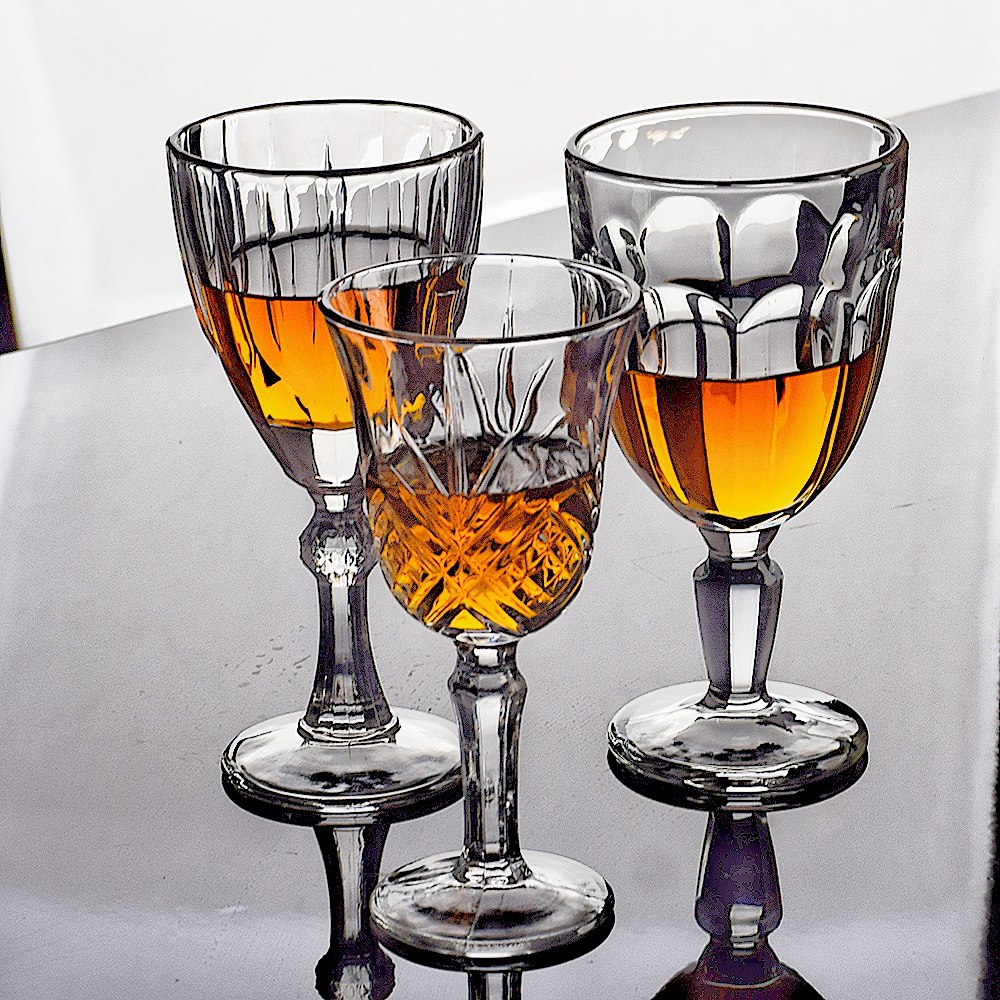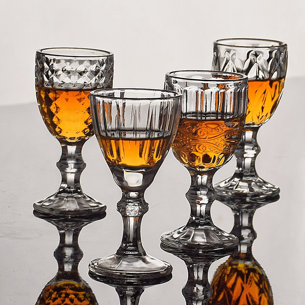 厚いガラスのゴブレット、白ワイングラス、スピリッツグラス、彫刻入りゴブレット、小さなワイングラス、クリエイティブな一口スピリッツグラス