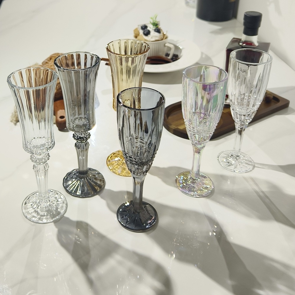 ガラスシャンパングラス高足杯レトロカップ浮き彫りカップins鳳高顔値グラス甘いグラス