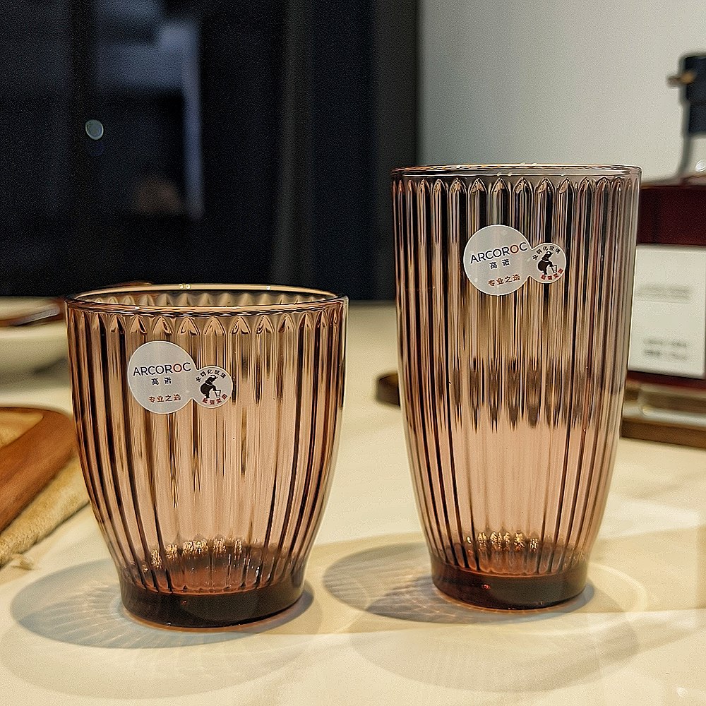 霞ケ光縦紋グラデーションガラスカップ女性家庭用高颜値カクテルカップ甘いグラスコーヒーカップ高級感