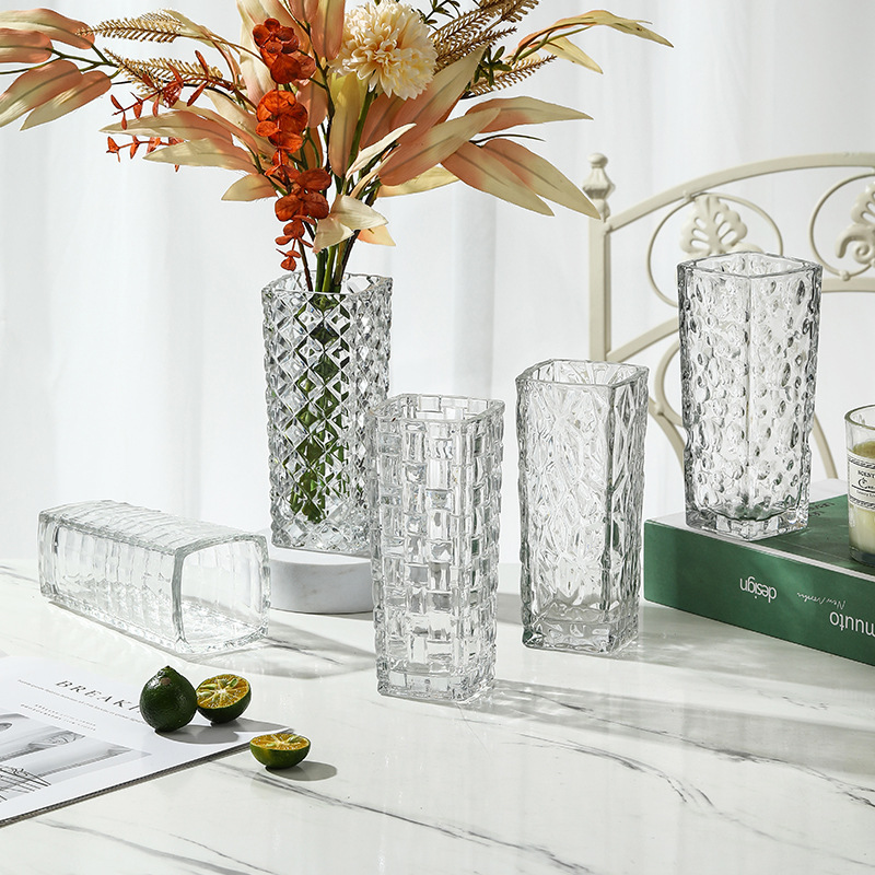 ガラスの花瓶の現代的な生け花の軽い豪華な置物の透明な客間の装飾のシンプルな食卓の高級