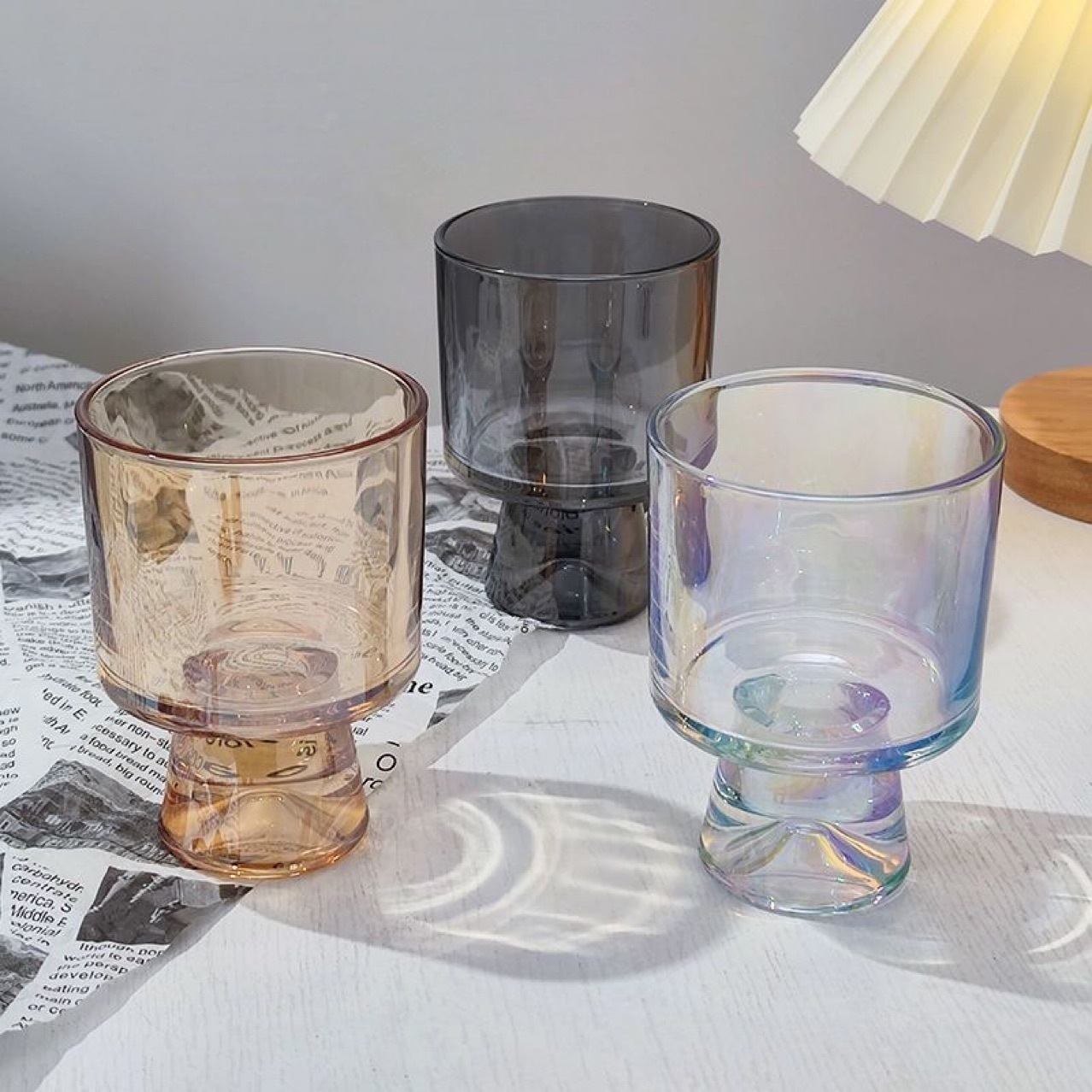 デザイナーの小さな足の高いグラスの高級感のあるデザートカップins風コーヒーカップのグラスはコップを飲みます。