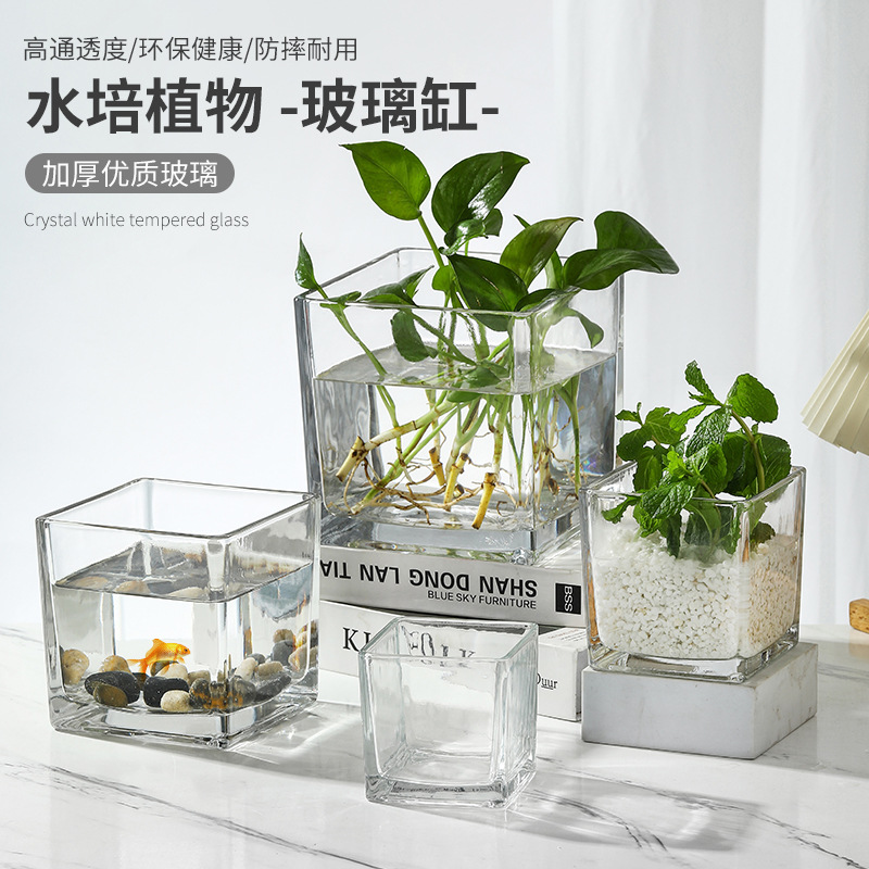 ガラスの正方形のかめのシンプルな水耕栽培の植木鉢の透明な緑のロリの水養の植物の器のカメのかめのカメのかめの振り子