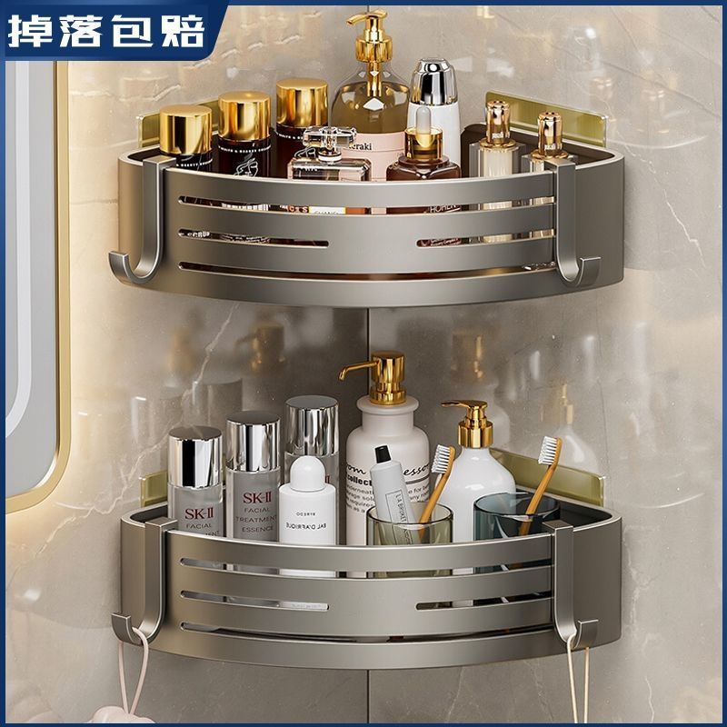 トイレの棚の壁の棚の壁掛けトイレの三角バスケットの収納棚の浴室の穴を開けない三角の棚