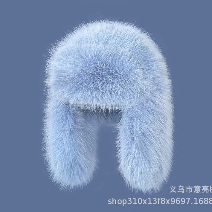 越境秋冬欧米街頭かわいいウサギの耳の毛の帽子の女性は保温と防寒の個性の雷鋒の帽子の男を厚くします。