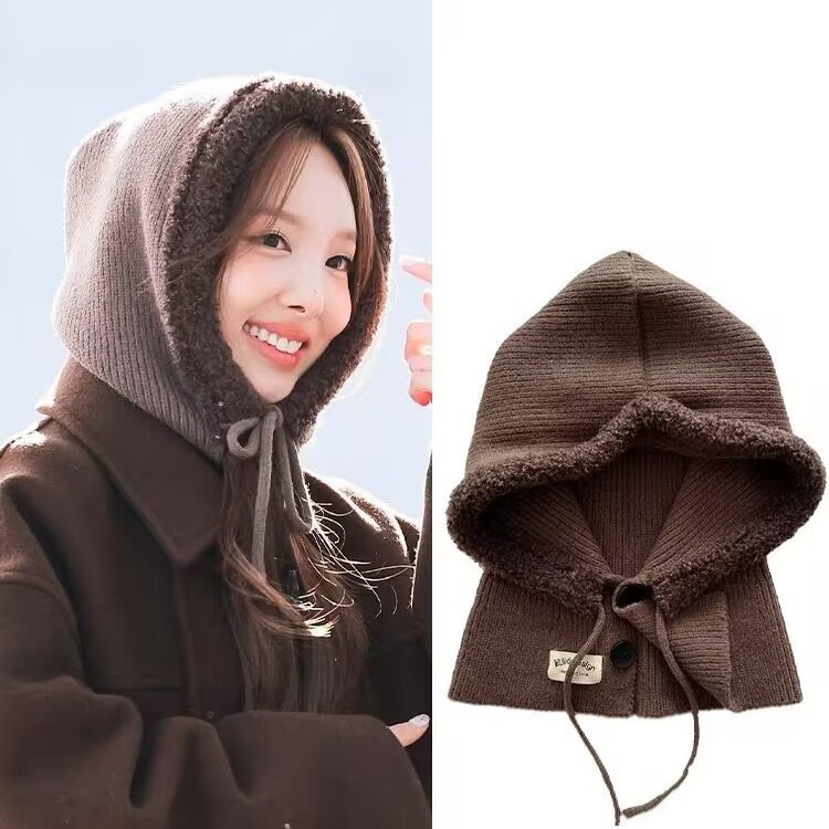 TWICE林娜瑛ニット帽スター街拍ファッション個性カバーニット帽子balacalvaマフラー