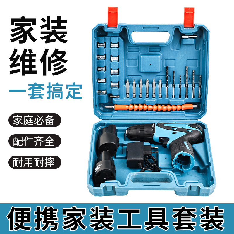 新型電気ドリルリチウム電気クロスボーダー電動ドライバー多機能懐中電灯ドリル家庭用電動工具セット卸売り