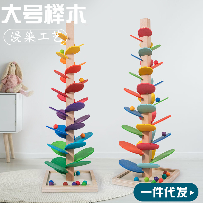 木製の虹の音楽の木の子供の花びらの赤ちゃんの大きいサイズの木製のinsの音楽の木のボールのローラーのボールの滑走路のおもちゃ