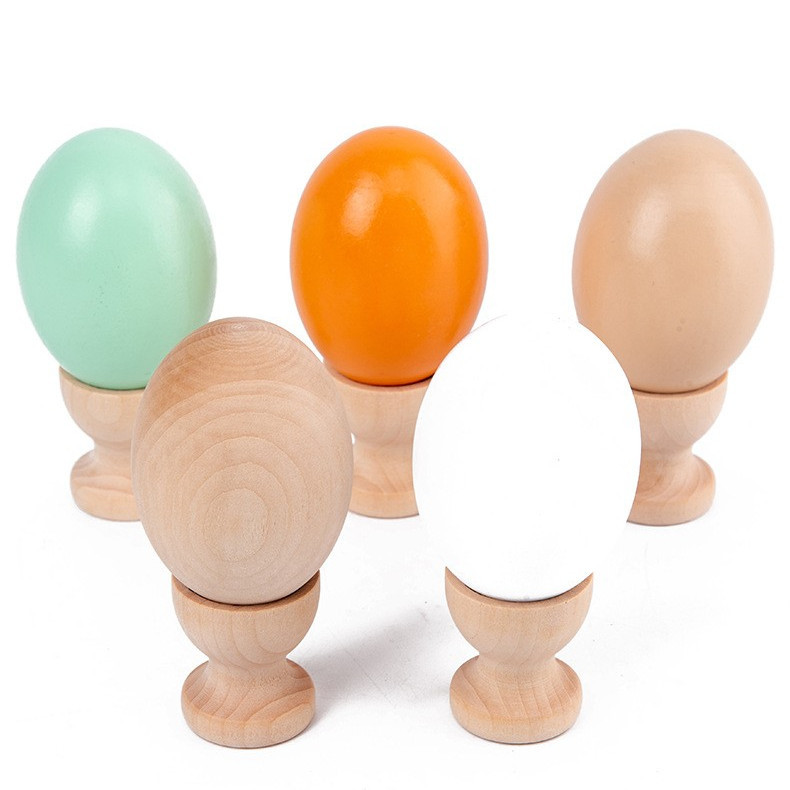 ままごとの木の卵は卵をくわえて支えます。