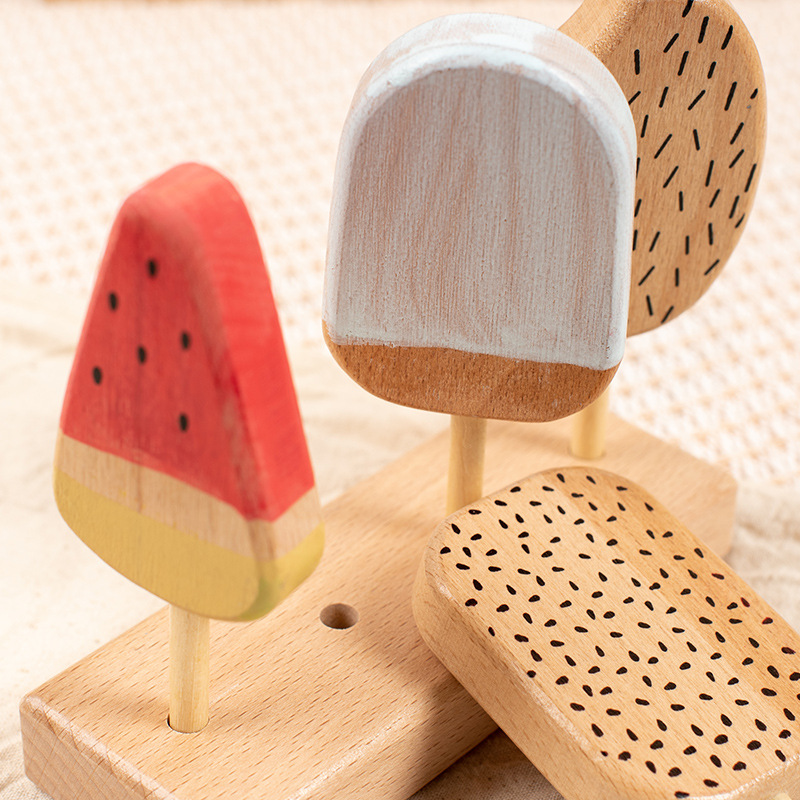 子供のまごとアイスクリームのアイスクリームのお店はアイスクリームのおもちゃの女の子の台所のおもちゃの木製をシミュレーションします。