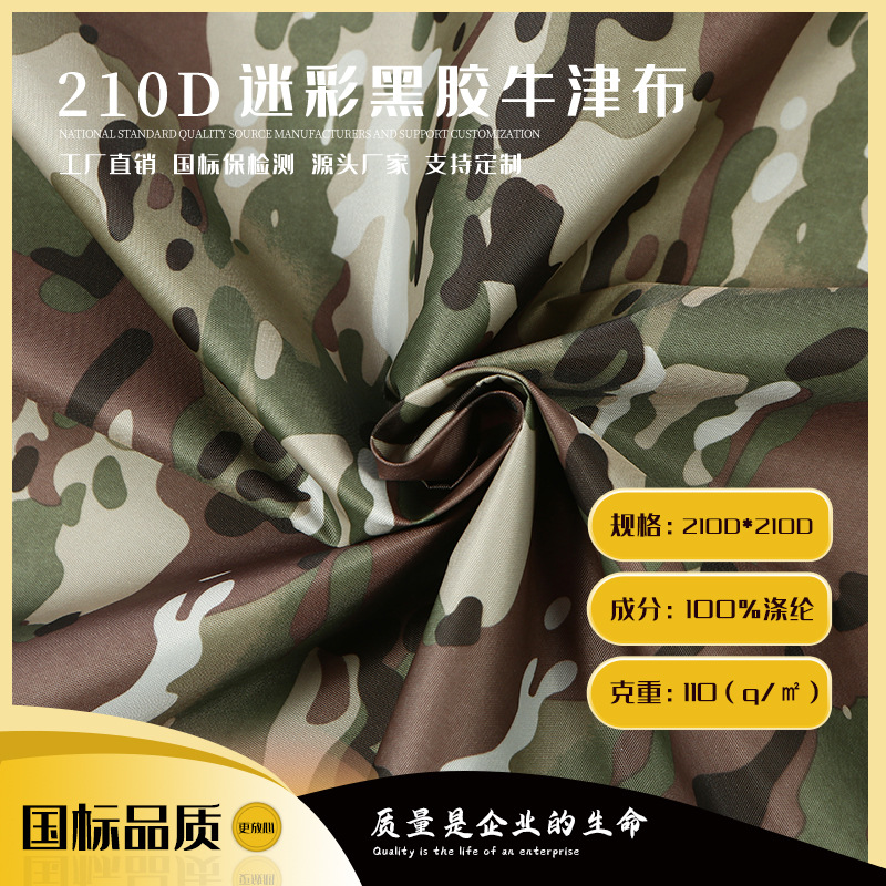 210D迷彩柄黒色ビニールオックスフォード布防水遮光生地屋外迷彩テントバッグ素材防水日焼け止め